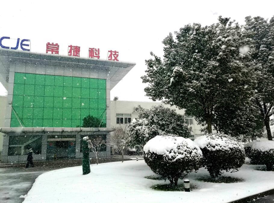 今年的雪來勢兇猛,全城開啟“冰雪奇緣”模式。廠區道路、屋面、車棚、樹木被積雪覆蓋,給全體員工的出行帶來不便。但“CJE 常捷科技”在銀裝素裹下更顯熠熠生輝。
